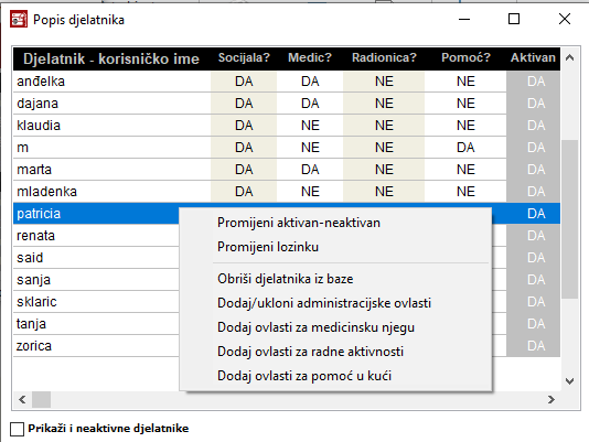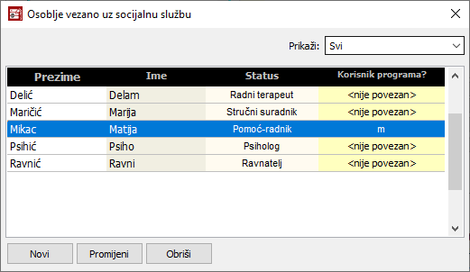 Slika 4.23 - popis pomoćnog osoblja koje obavlja usluge za korisnike