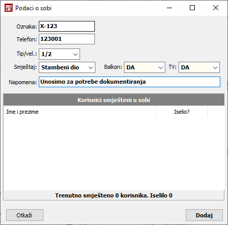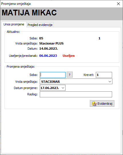 2.3.12. Promjena vrste smještaja ili sobe/stambene jedinice...............................................................................................................................................................................25