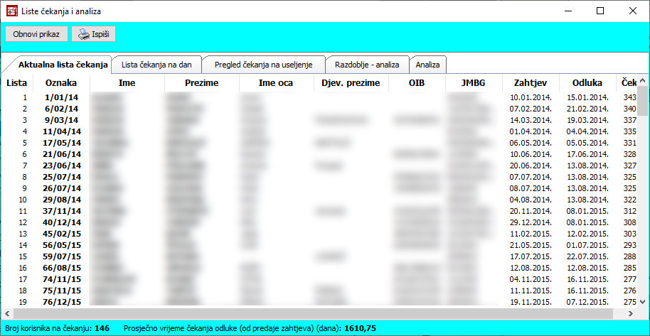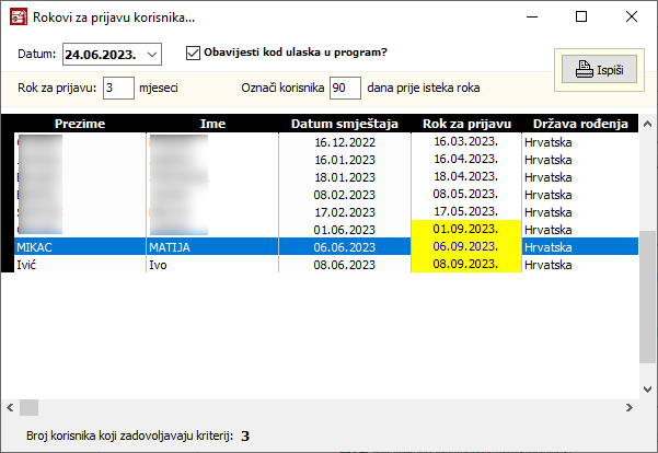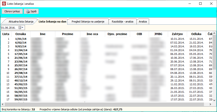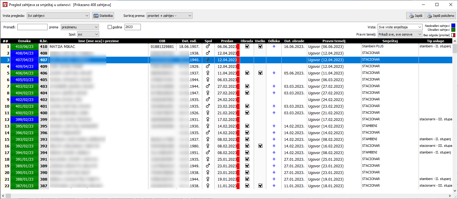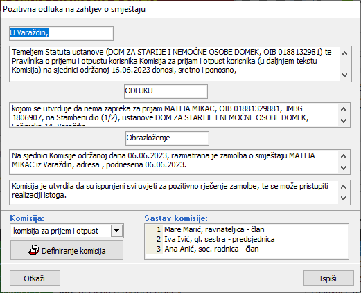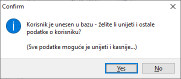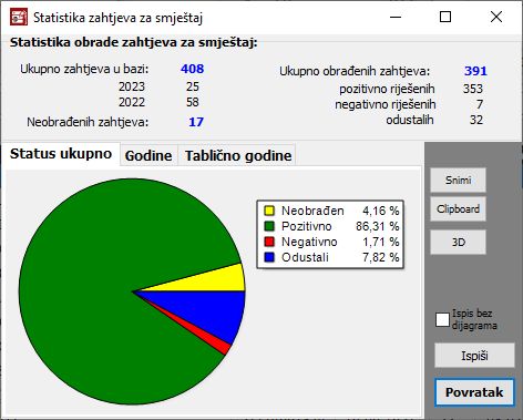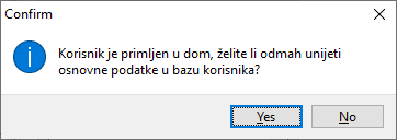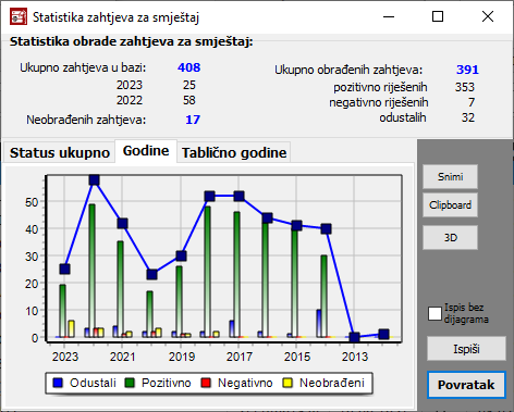 U slučaju pozitivne odluke o zahtjevu, program podatke o korisniku automatski prebacuje u upisnik korisnika, a daljnja obrada i pregled popisa korisnika je omogućena kroz adekvatne stavke glavnog izbornika (opisano u odjeljku 4.3.).