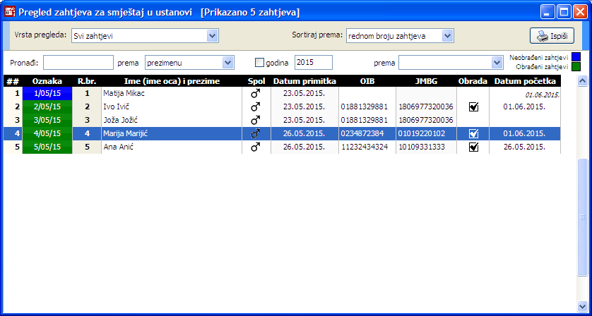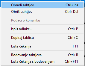 Zahtjev je moguće pregledati i obraditi dvoklikom miša na željeni zahtjev u popisu.