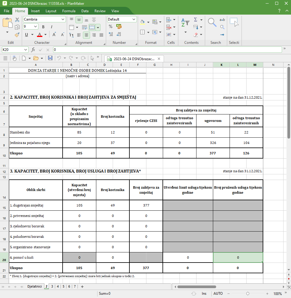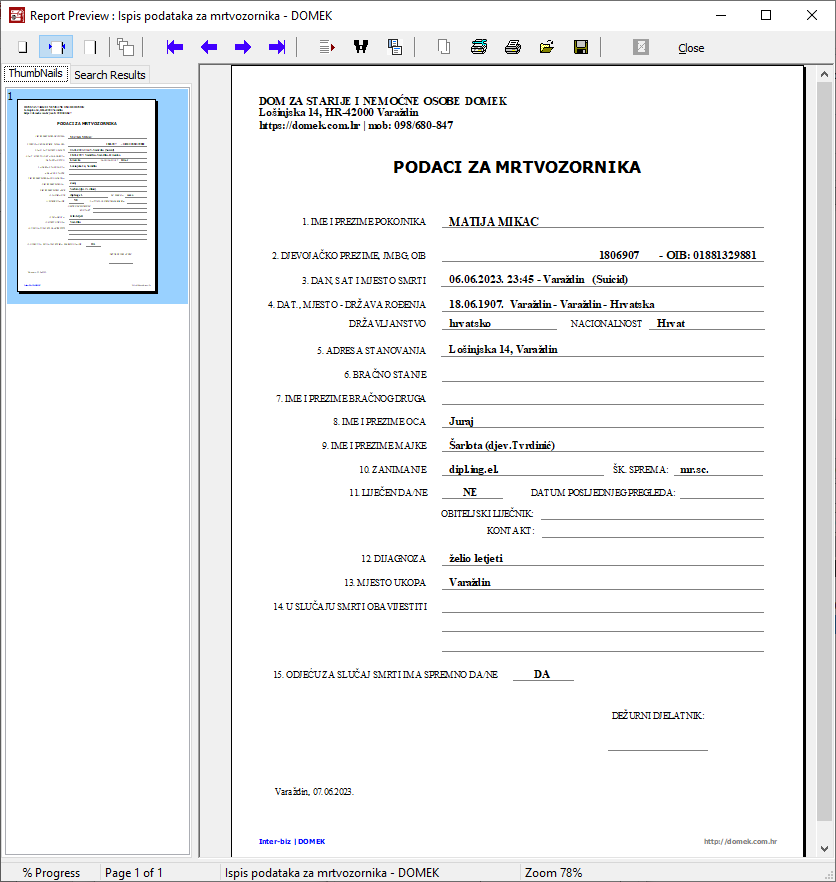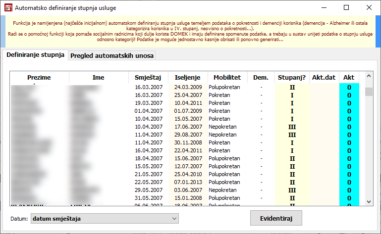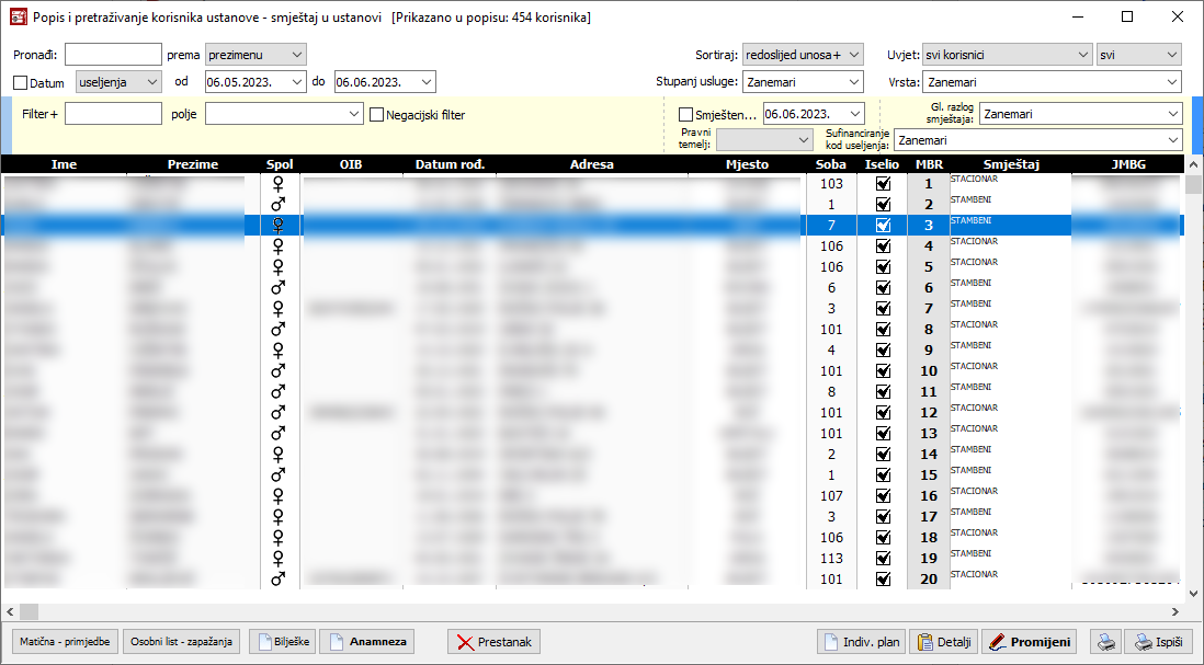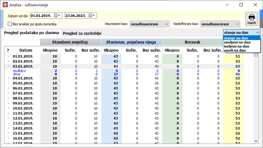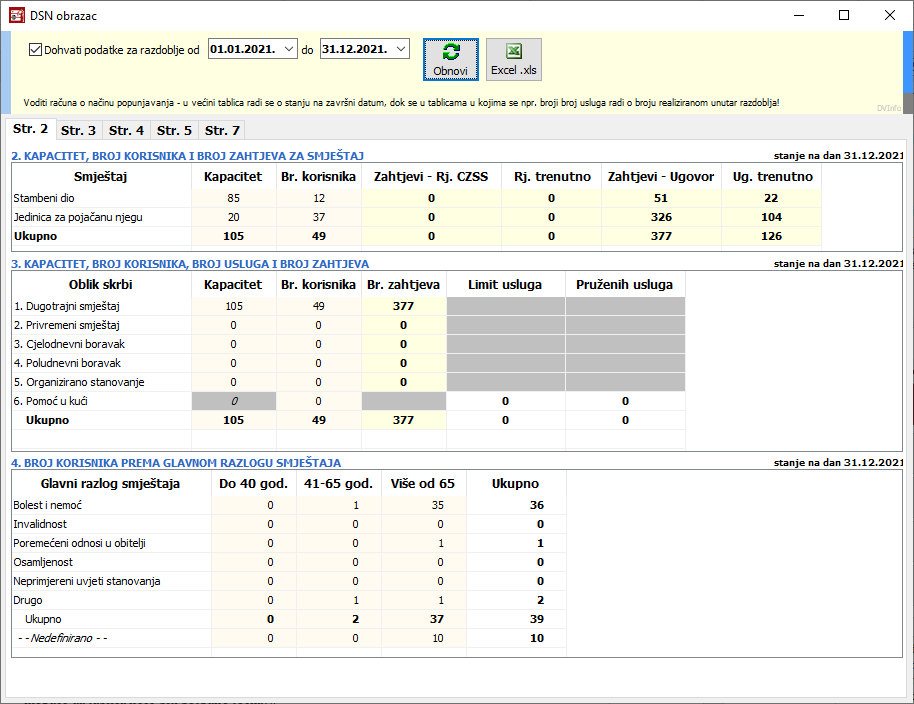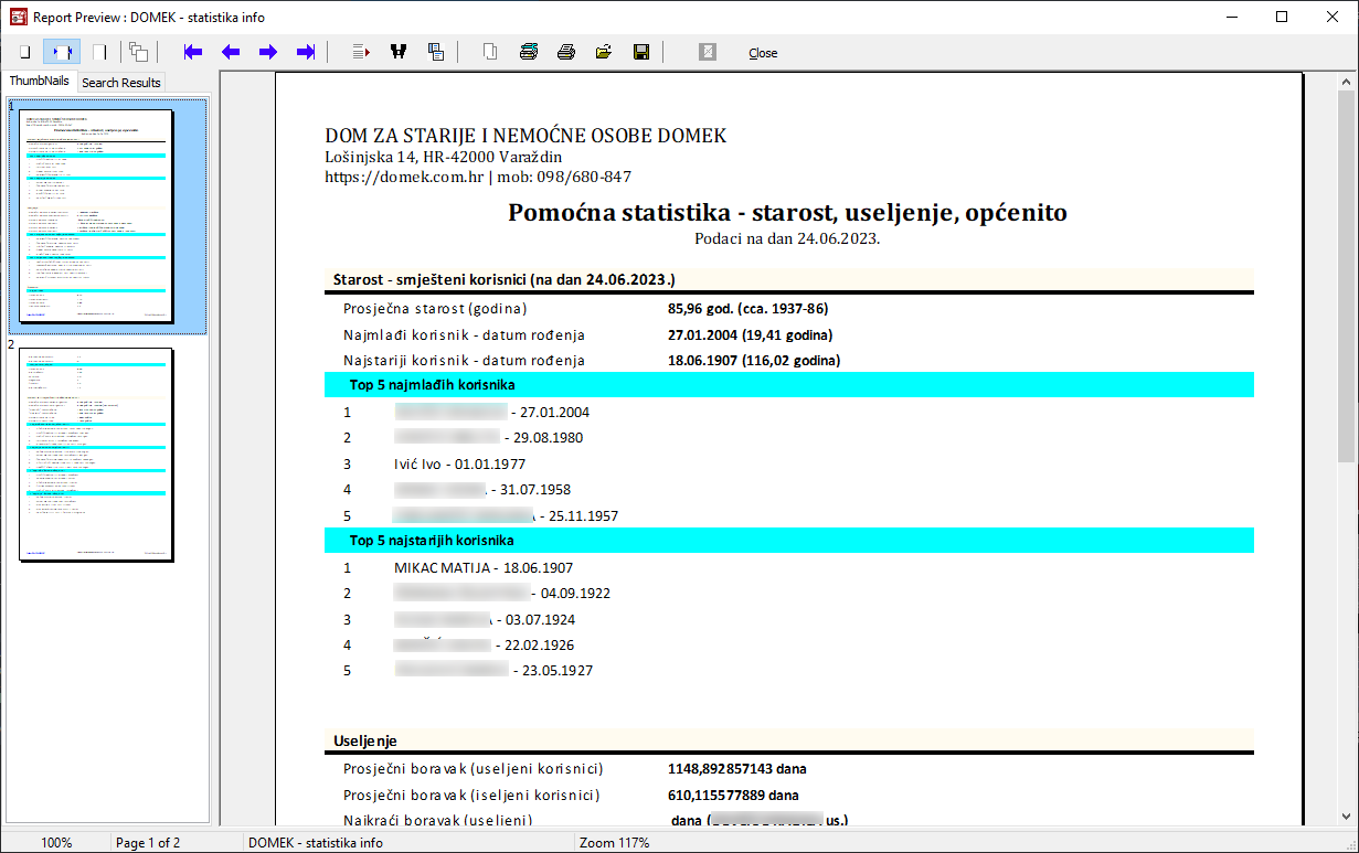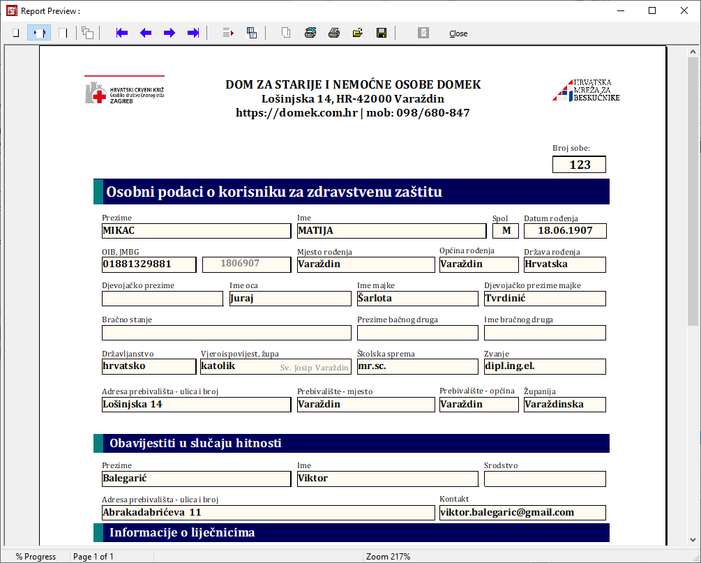 Naravno, za svakog pojedinog korisnika moguće je ispisati detaljni pregled aktivnosti za željeno razdoblje, kao i standardni izvještaj prikazan na slici (izvještaj zapravo sadrži zapise socijalnog radnika ili radnog terapeuta, a njemu se u praksi obično priloži i detaljni ispis provedenih aktivnosti za tog korisnika).