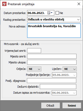 2.3.4. Evidentiranje prestanka smještaja u ustanovi. Podaci za mrtvozornika...............................................................................................................................................................................17
