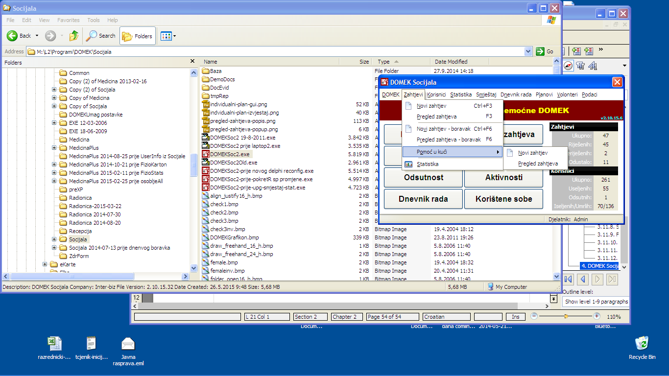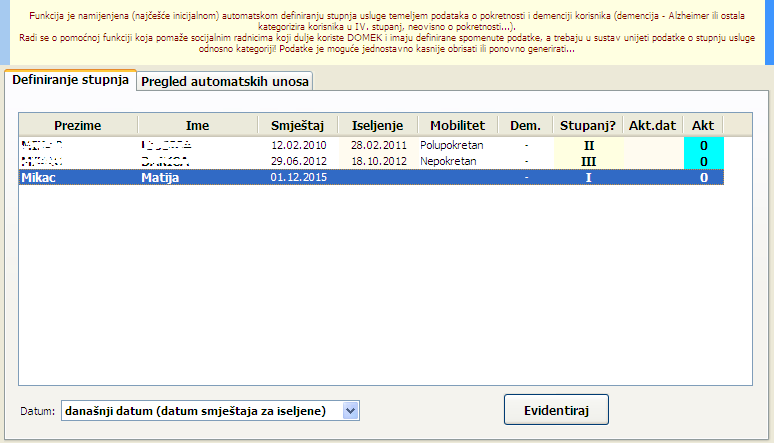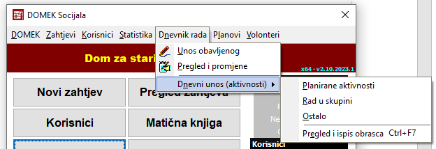 Slika 4.1 - sučelje modula DOMEK Socijala s uključenim funkcijama evidencije usluge pomoći u kući