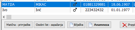 Standardno, polja za unos datuma mogu biti »isključena« - to znači da datum nije definiran. Želite li aktivirati određeno polje za unos, dovoljno je dvoklikom miša kliknuti na tekst/naziv polja (u pravilu lijevo od polja za unos). Ukoliko određeni podatak nije dostupan ili se ne definira, preporuka je to polje postaviti isključenim - na isti način kao i uključivanje, i isključivanje se provodi dvoklikom na tekst naziva polja...