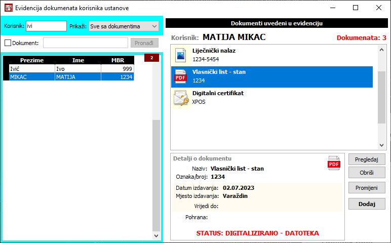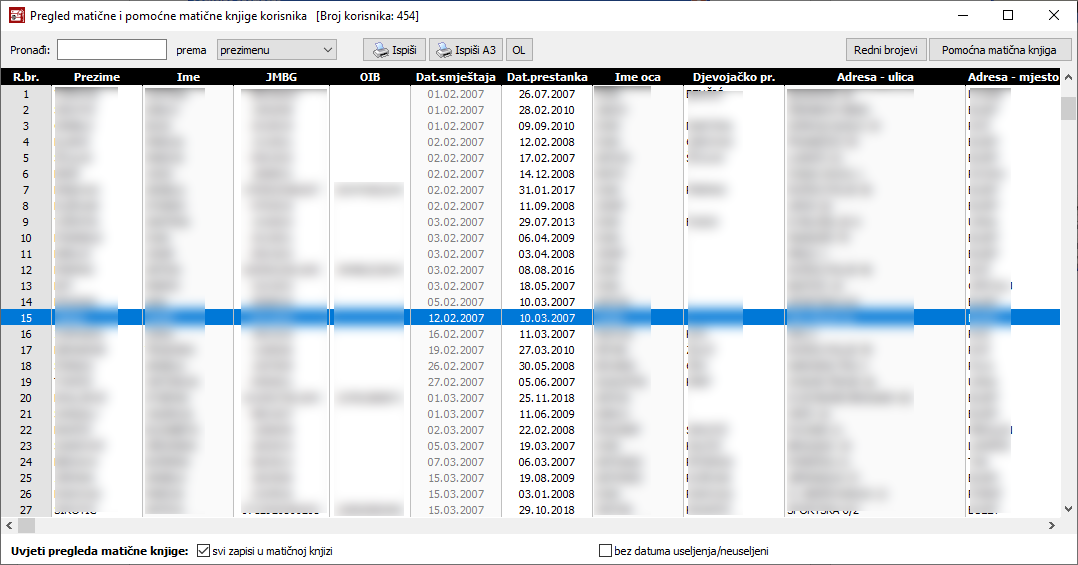 2.3.2. Prikaz podataka o korisnicima - podaci matične knjige, osobni list...............................................................................................................................................................................15