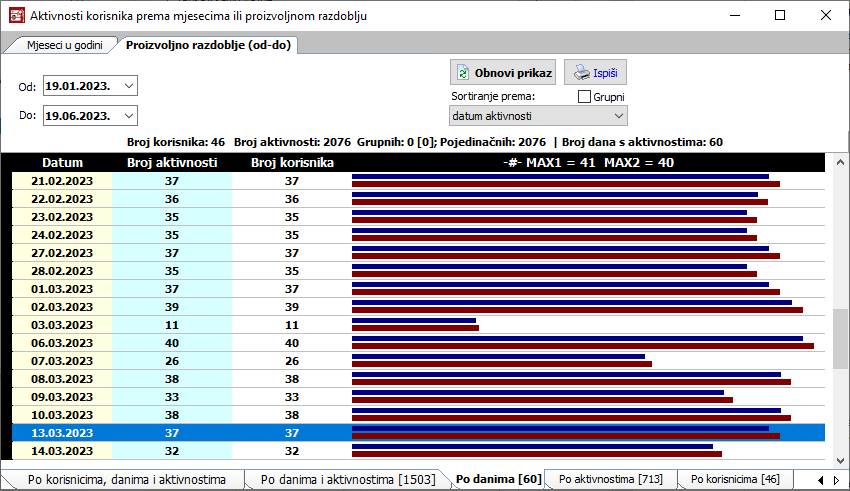 Slika 126: Izvještaj o ukupno provođenim aktivnostima po korisnicima, za razdoblje