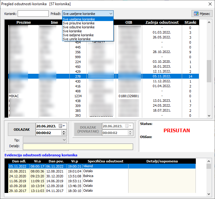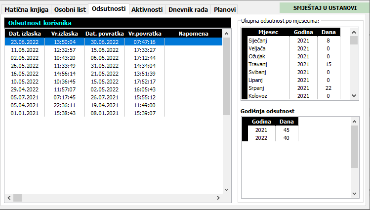 2.6. Evidencija odsutnosti korisnika...............................................................................................................................................................................31