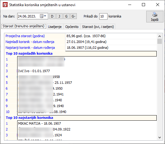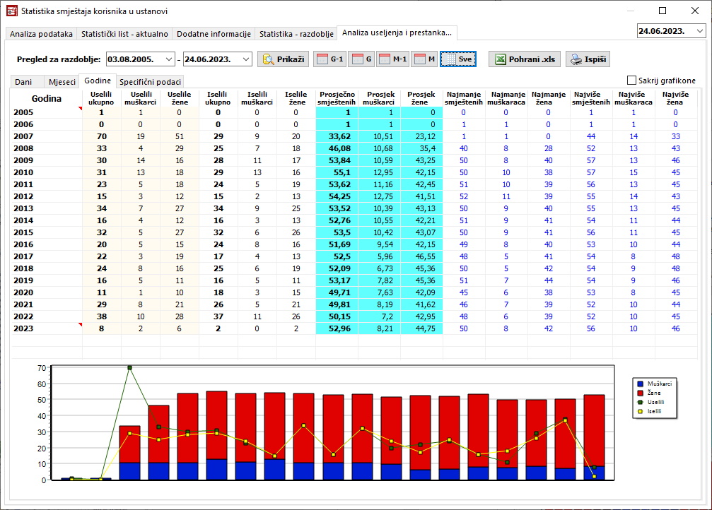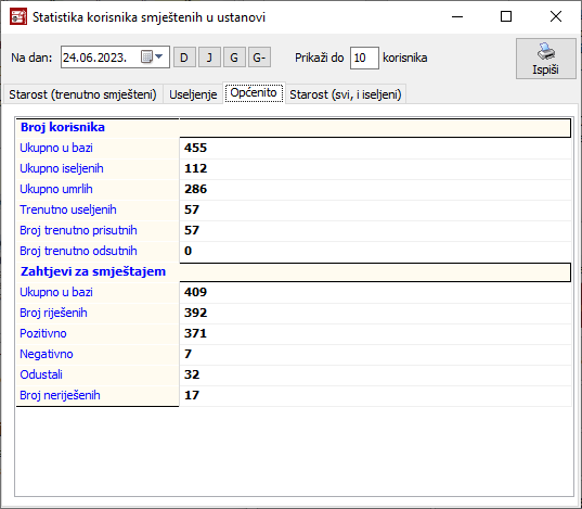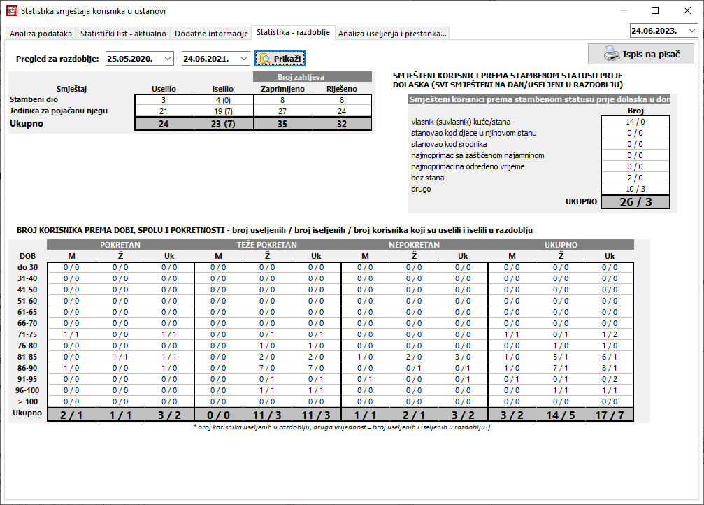 2.10.8. Pomoćna statistika korisnika - starost, useljenje..................................................................................................................................................................................49
