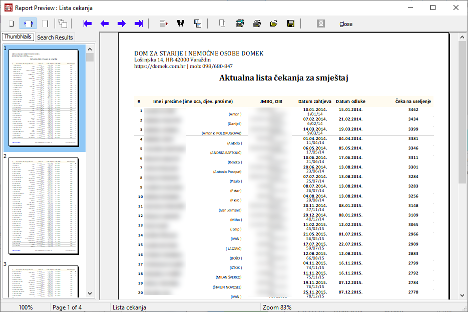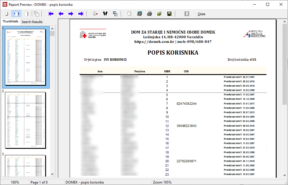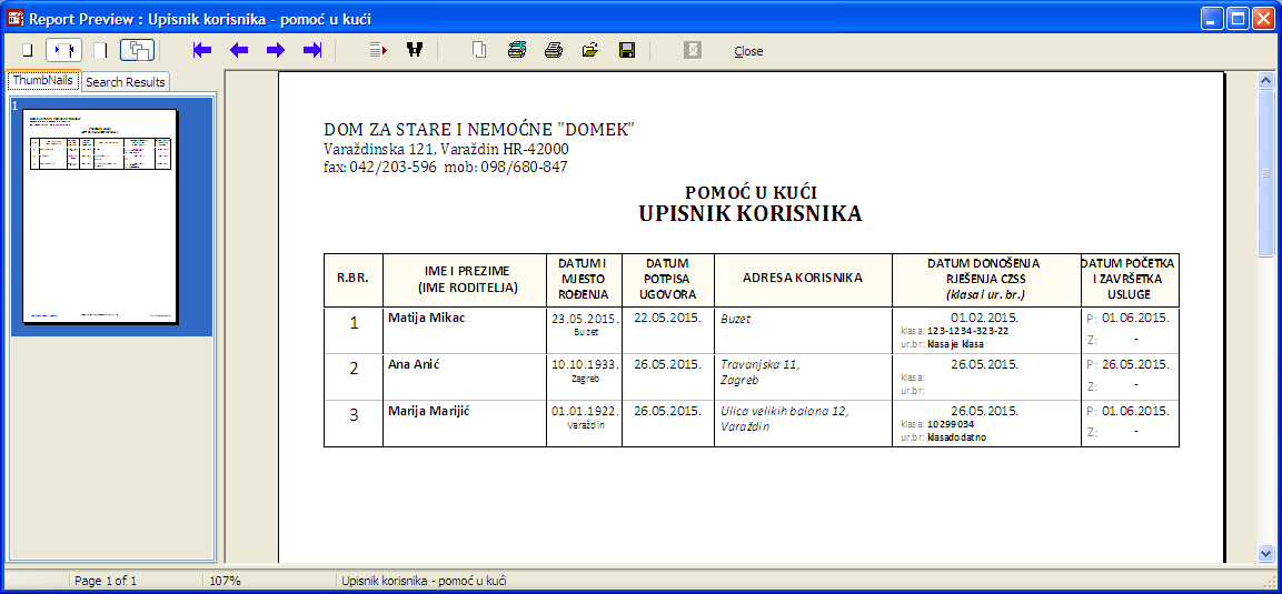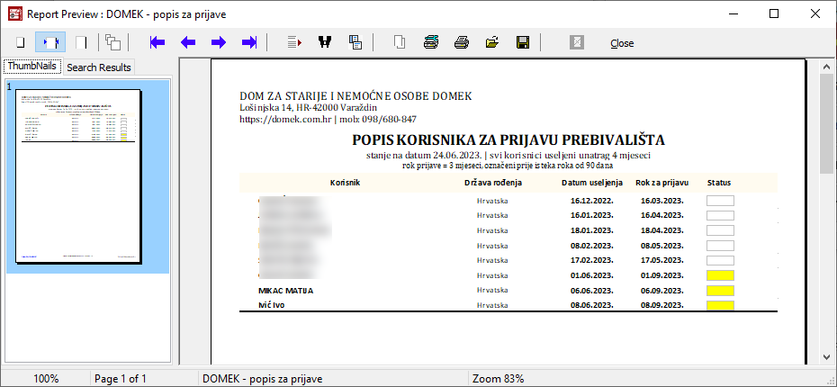 Slika 4.11 - ispis upisnika korisnika - pregled izvješća prije ispisa