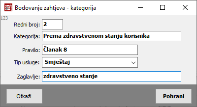 2.11.5. Definiranje kategorija i detalja bodovanja za zahtjeve za smještaj i boravak...............................................................................................................................................................................55